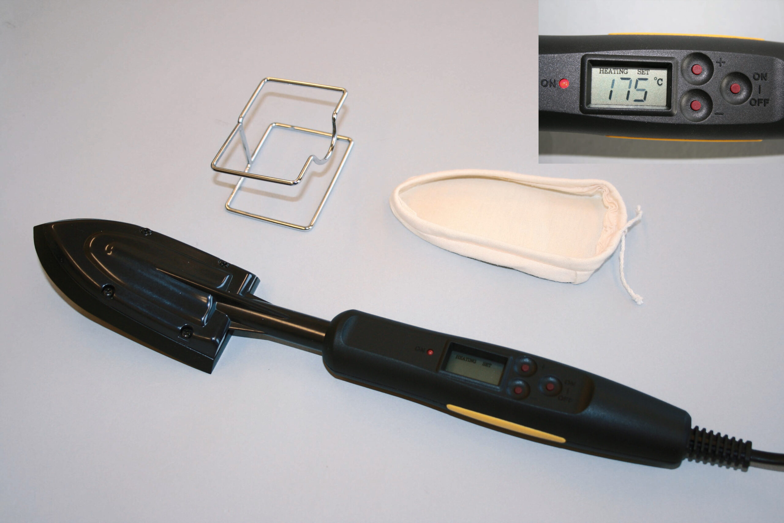 Za popravke s filmoplast® R ►podesivo 100–220 °C ►obložena ploča za glačanje ►LCD ►sa postoljem za odlaganje Koristi se kod