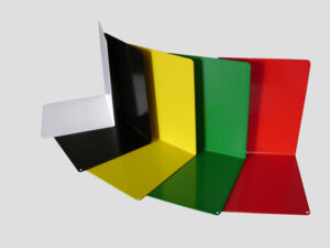 L-držači, razdjeljnici knjiga su u standardnoj dimenziji 12 x 15 cm, dostupni su i u drugim dimenzijama po narudžbi, a najčešće naručivane boje su bijela, crna, siva, crvena, plava, zelena i žuta.